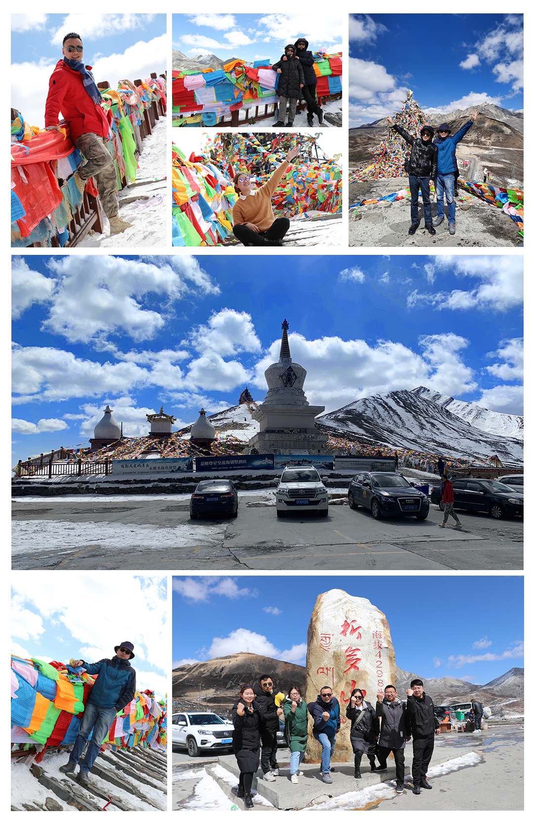 蓝天白云,神山冰川,虽有舟车之劳顿,却获取了心灵的净化。高山仰止,经幡飘扬,怀着朝圣之心,我们心怀敬畏,感叹大自然的鬼斧神工。我们越过了高山,目睹了冰川,突遇了暴风雪,漫步了花海,此次爱玛侬川西自驾之旅真真精彩刺激,不虚此行。