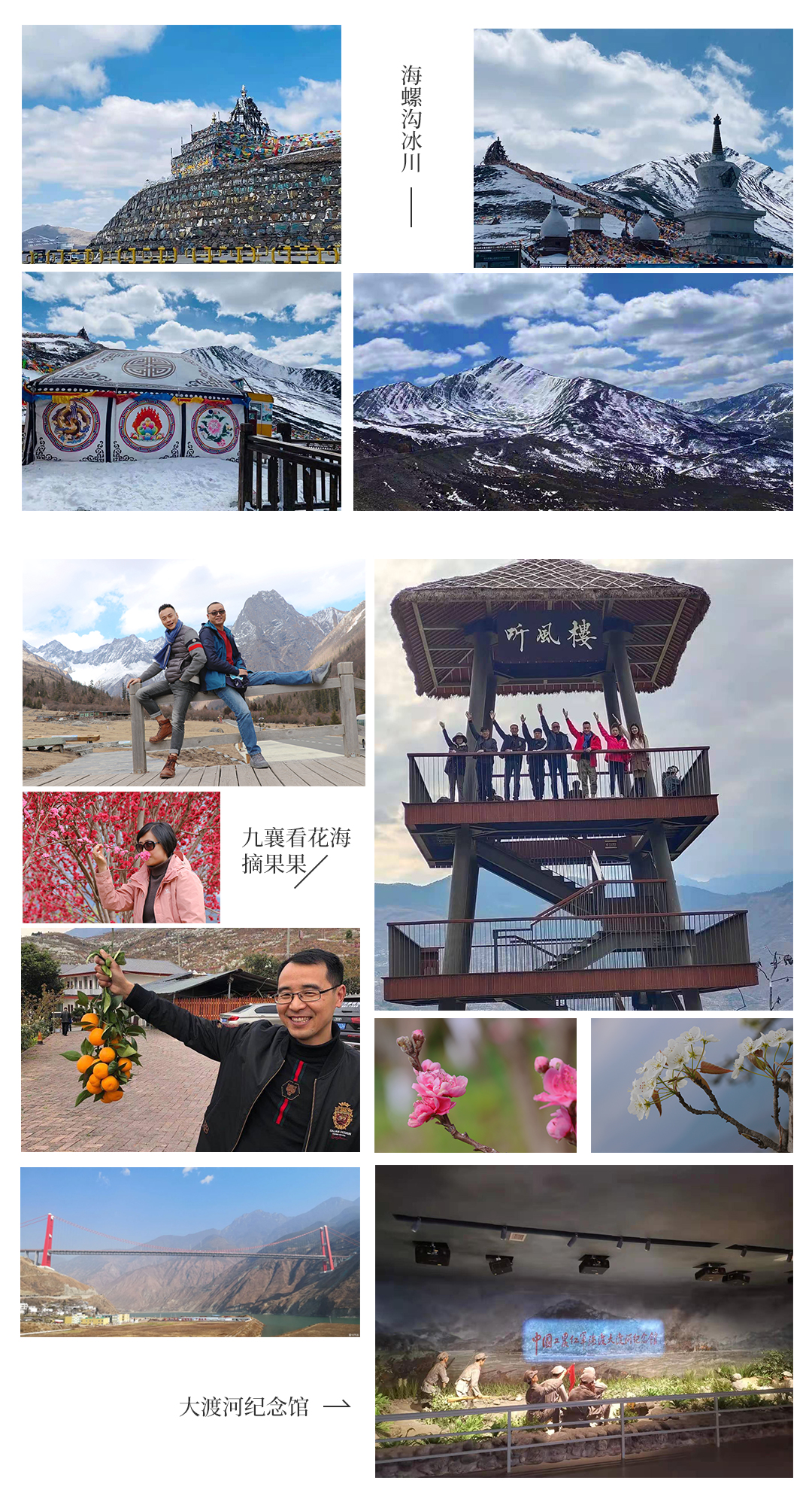第四天行程:海螺沟 - 泸定 - 九襄花海 - 返成都
