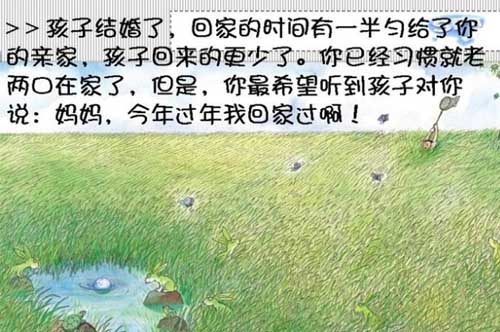 你已经习惯只有老两口在家,但是,你最希望听到孩子对你说:“妈妈,今年过年我回家过啊!”