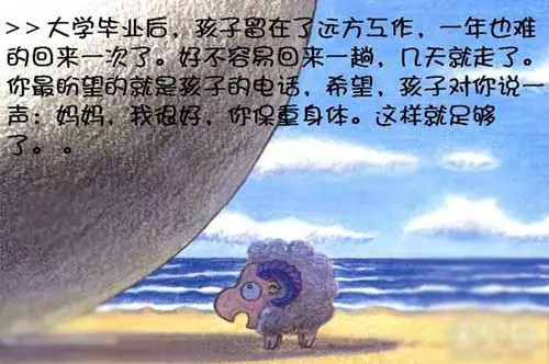 你最盼望的就是孩子的电话,希望孩子对你说一声:“妈妈,我很好,你保重身体。”这样就足够了。
