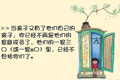 当孩子有了他们自己的孩子,我们已经不再是他们的家庭成员了,他们的一家三口(或一家n口)里,已经不包括你们在内了。